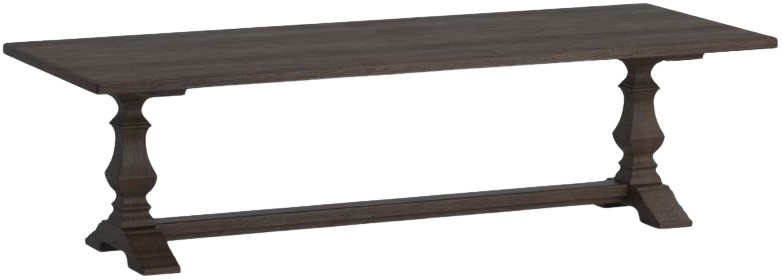 Baluster-style pedestals are joined by a steadying stretcher rail for support and a real sense of permanence. Choose from finishes ranging from greys and whites to deep browns with light distressing. Finish choices available in-store. Available in four sizes: 72", 90", 108", and 126".