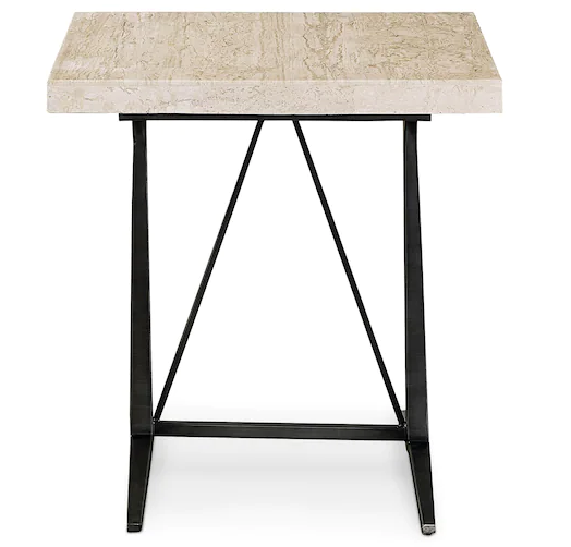 Creamy color and distinct veins of travertine stone are set off by a chic dark base on this Tyson end table. 24"H x 25"W x 25"DRead More
