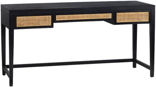 Plug into productivity with a hint of the tropics. A satin-black frame sets the stage for three drawers faced in hand-woven natural cane, giving modern edge and organic warmth at once. A full-depth center drawer hides keyboards or clutter while the open trestle base keeps your workspace light and leg-friendly.Read More