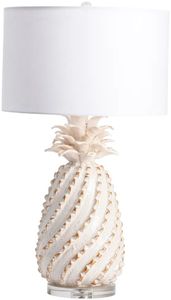 The Crestview Collection Estate Table Lamp has a traditional style with a ceramic base. The cream base features a raised, twisted design and leaves at the top that resemble a pineapple. A crystal base and white drum shade complete this lamp on both ends.Read More