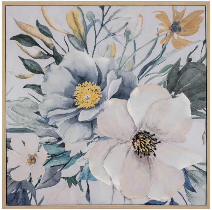 The Crestview Collection Flower Power wood frame canvas painting showcases elegant flowers in a bunch with hues of white, blue, and yellow. This piece is 70-percent hand painted and measures 39.4-inches square. This lovely artwork showcases a transitional style that will blend within almost any decor.Read More