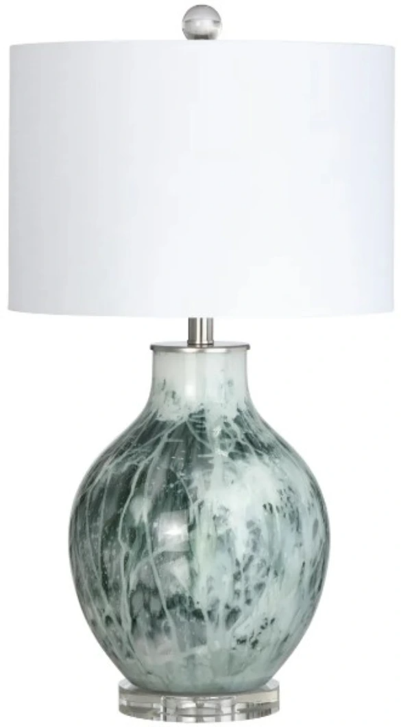 The Gwin Table Lamp by Crestview Collection is crafted of blown glass with a reverse painted effect in a beautiful, dripped glaze of azure and white. The color scheme is peaceful and serene, and the crystal base adds just the right touch of sparkle.Read More