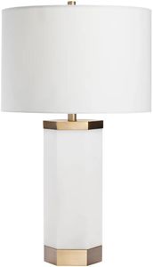 The Crestview Collection Lucien Table Lamp has a brass finished bottom and top of the faux alabaster stone, white, hexagonal base. Strong and stable, this 31.5-inch tall lamp is topped with a white linen drum shade.Read More