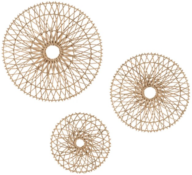 Embrace organic elegance with the Crestview Collection Sunburst wall décor set. This stunning three-piece collection features intricate, woven rattan in a radiant sunburst design. Perfect for transitional spaces, these natural textured medallions bring airy, bohemian charm and architectural depth to your walls, creating a serene and stylish focal point.Read More