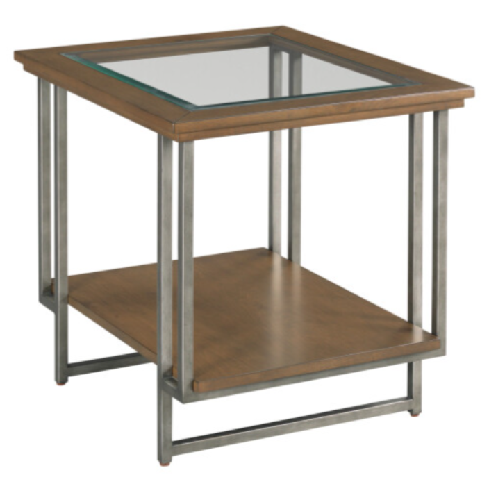 Put your style on display with the Ingrid collection from Hammary. Alder veneer tops in a Bronze finish with inset beveled tempered glass, and metal legs in a Dusty Silver finish that cantilever to the front and back sides of the tables to create a contemporary floating silhouette.Read More