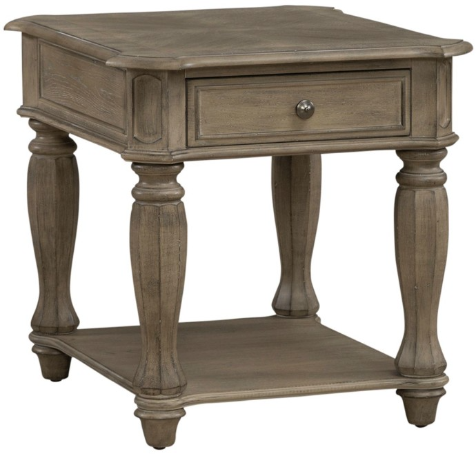 Elevate your living space with the Magnolia Manor end table. This piece features a weathered bisque finish. The centerpiece of the table is its luxurious fancy face veneer top, showcasing a stunning array of wood grain patterns that add a touch of opulence to any room.Read More