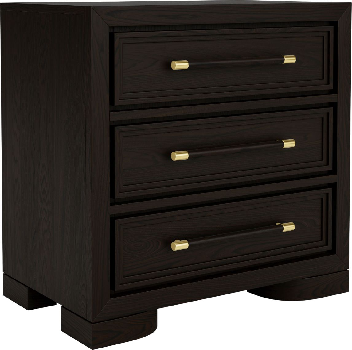 The Lydia Three Drawer Nightstand is constructed of select hardwood solids and random matched oak veneer and has unique block feet that subtly curve back under the case. Each drawer is framed with sleek multi stepped molding for an elegant finish.Read More
