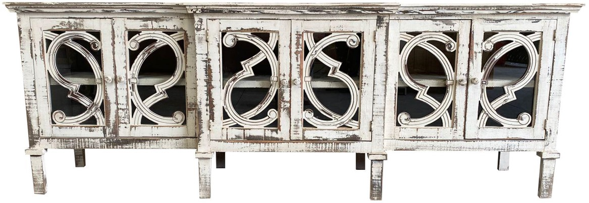 This Vintage Furniture Harp 4-Door Console with Glass exudes timeless elegance. Crafted with meticulous attention to detail, its harp-inspired design adds a touch of sophistication to any space. The console features four doors adorned with intricate patterns, while the glass panels offer a glimpse of the curated treasures within, blending functionality aesthetics.Read More